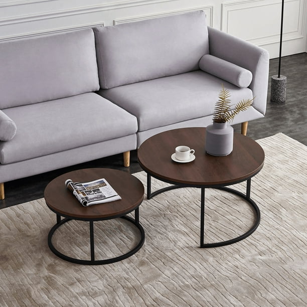 Uhomepro Modern Nesting Coffee Table Round Nesting Coffee Table Set Of 2 Modern Sofa Side Coffee Table With Solid Metal Frame For Living Room Balcony End Tables For Small Space Q16292